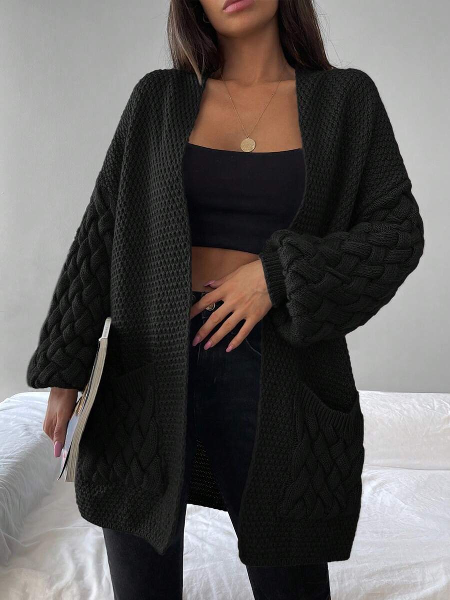 Elin™ | Åben Cardigan Med Flettede Lommer