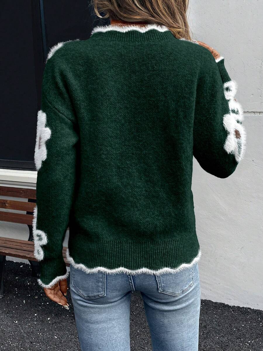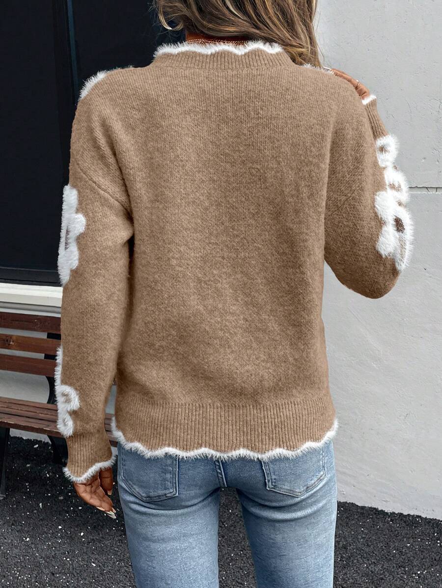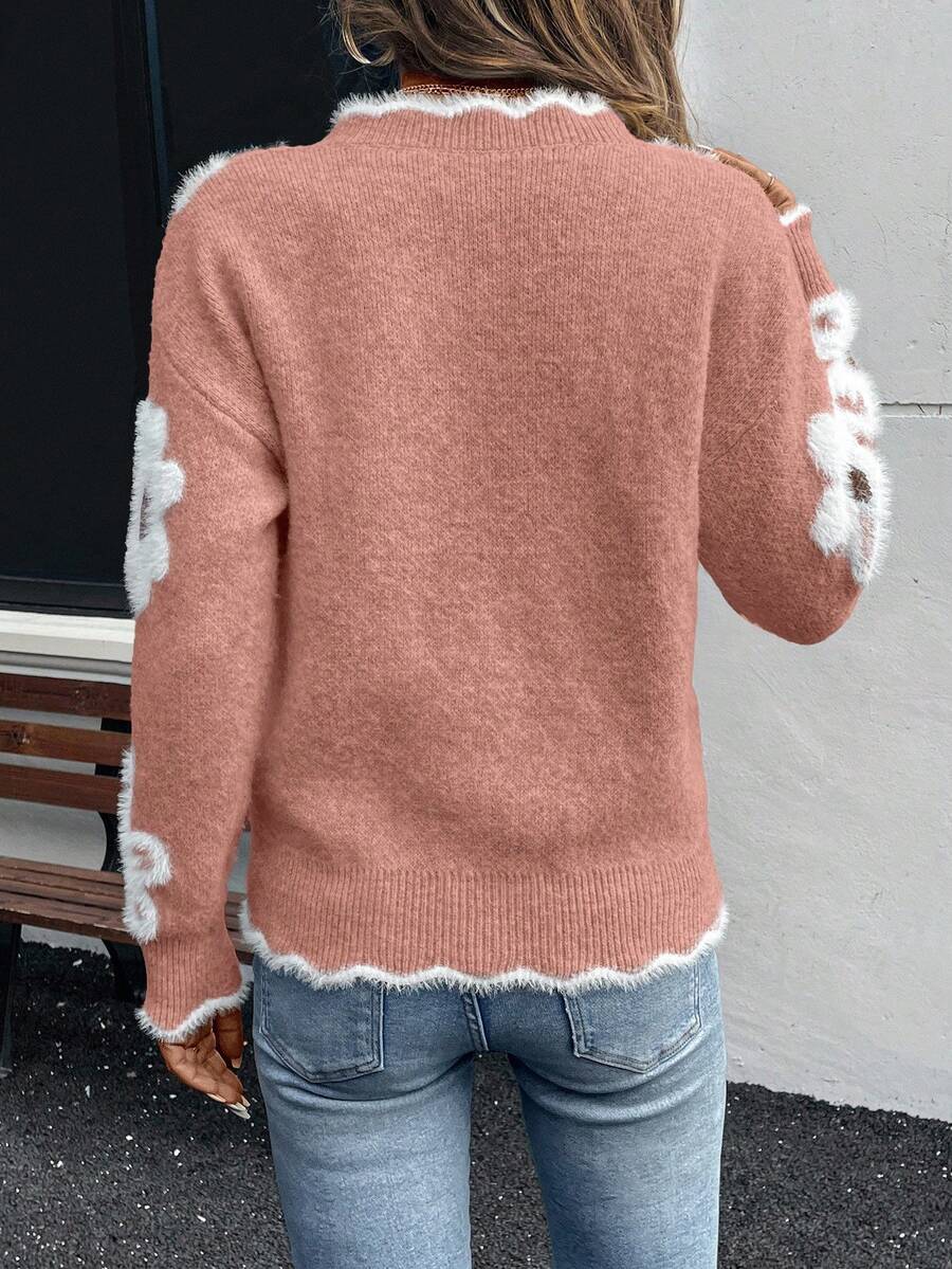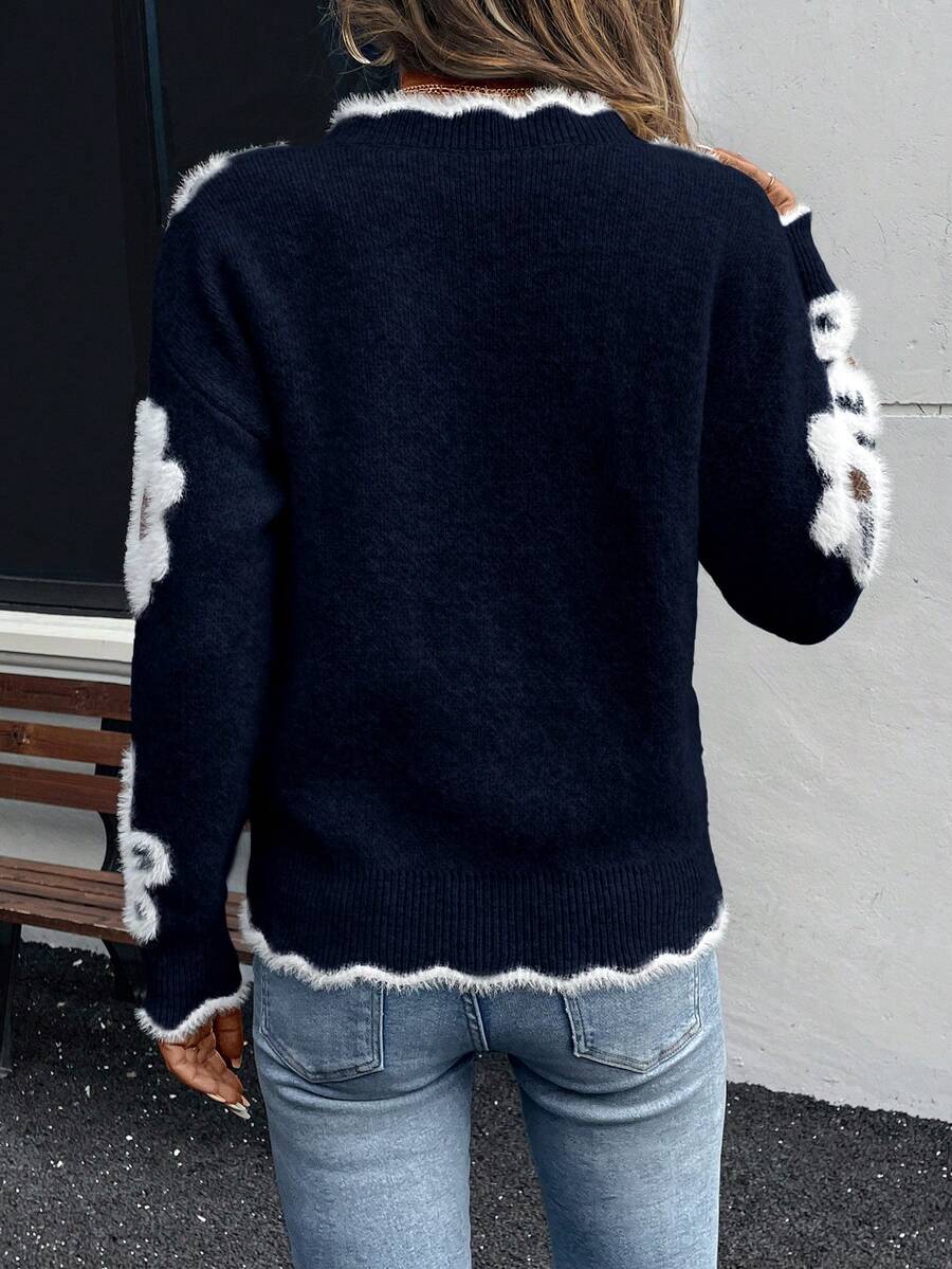 Denne bløde striktrøje kombinerer en flatterende V-udskæring med strikkede blomster, der giver et feminint og iøjnefaldende look. Perfekt til dage, hvor du vil føle dig godt tilpas uden at gå på kompromis med din stil. Brug Fleur™ afslappet med jeans eller mere elegant med en nederdel – uanset hvad, stråler du.