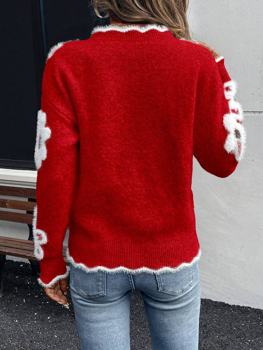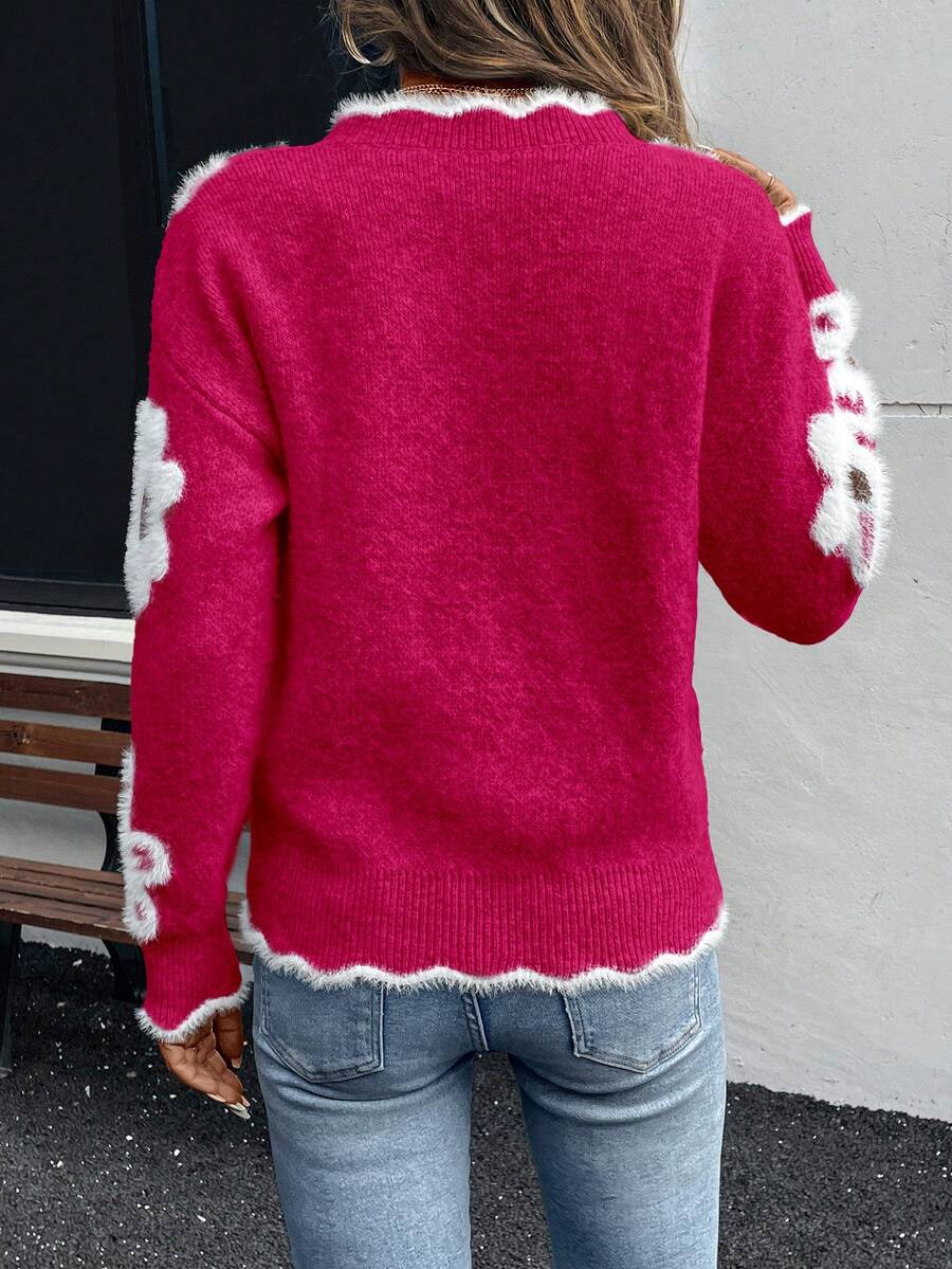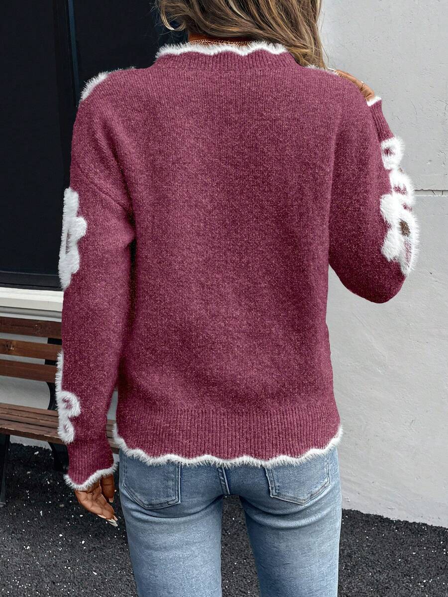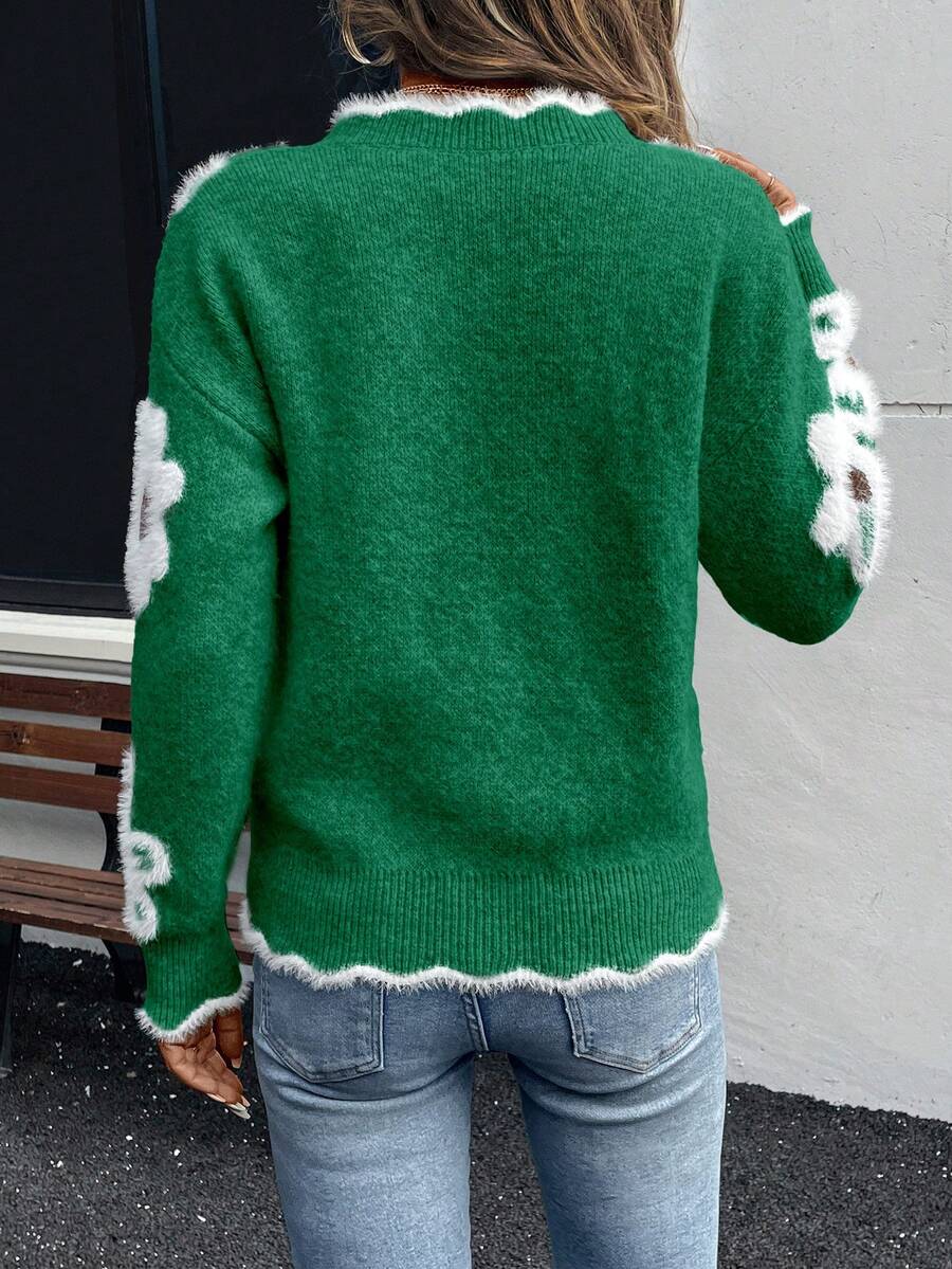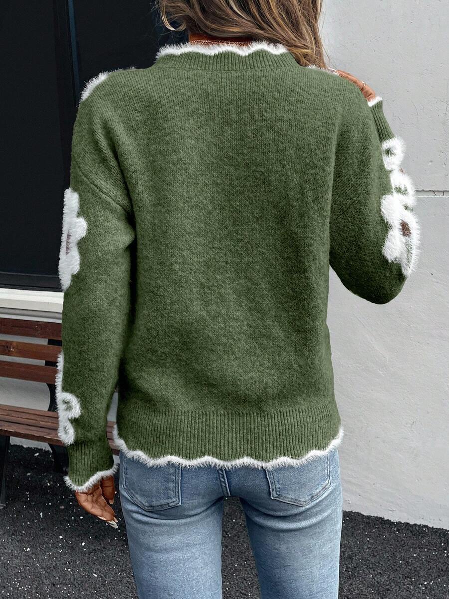 Denne bløde striktrøje kombinerer en flatterende V-udskæring med strikkede blomster, der giver et feminint og iøjnefaldende look. Perfekt til dage, hvor du vil føle dig godt tilpas uden at gå på kompromis med din stil. Brug Fleur™ afslappet med jeans eller mere elegant med en nederdel – uanset hvad, stråler du.