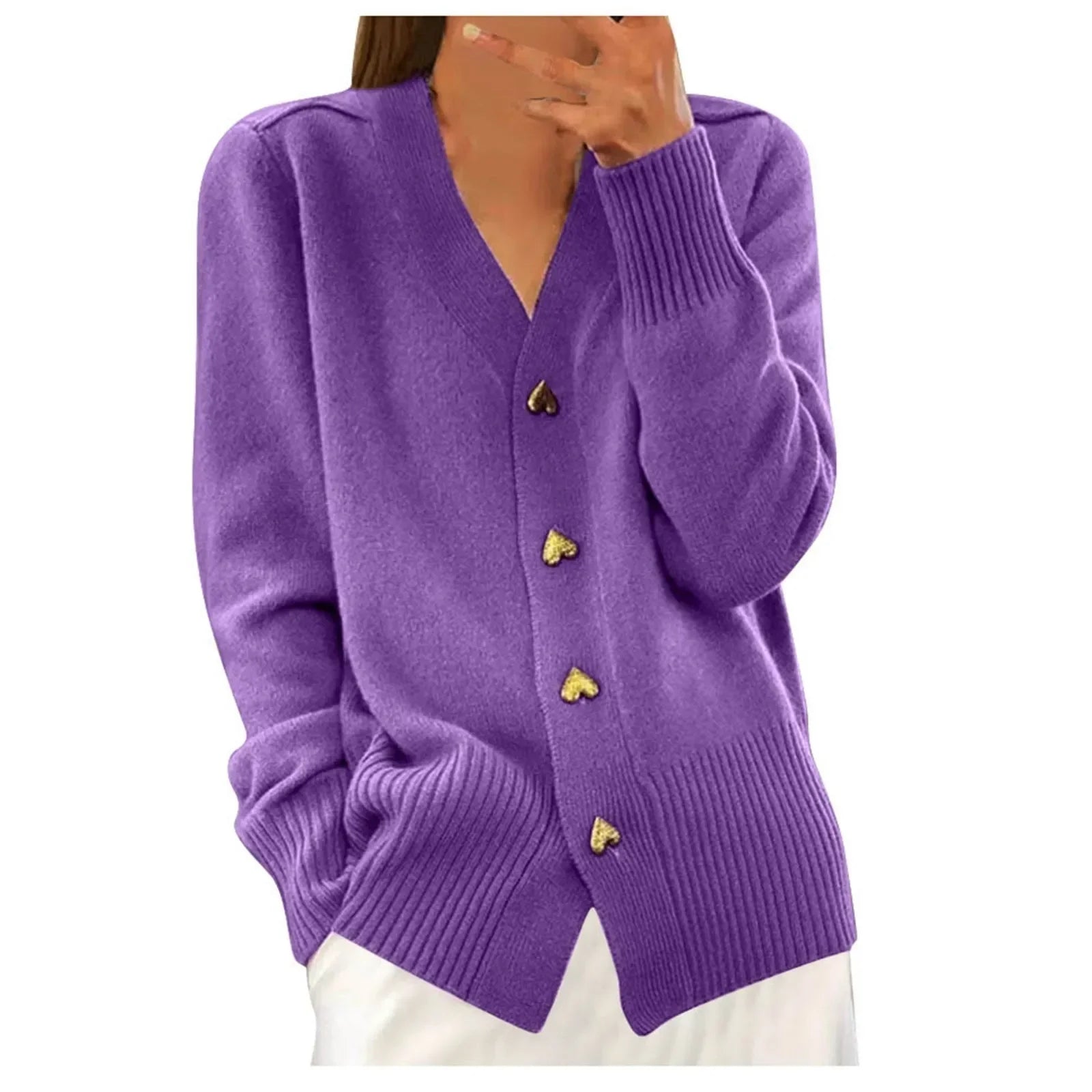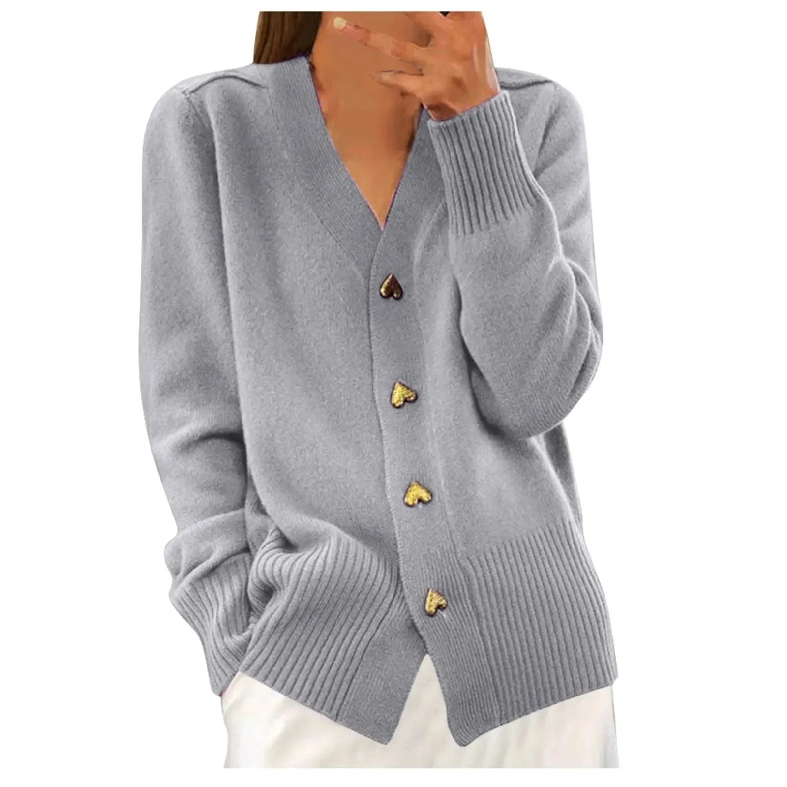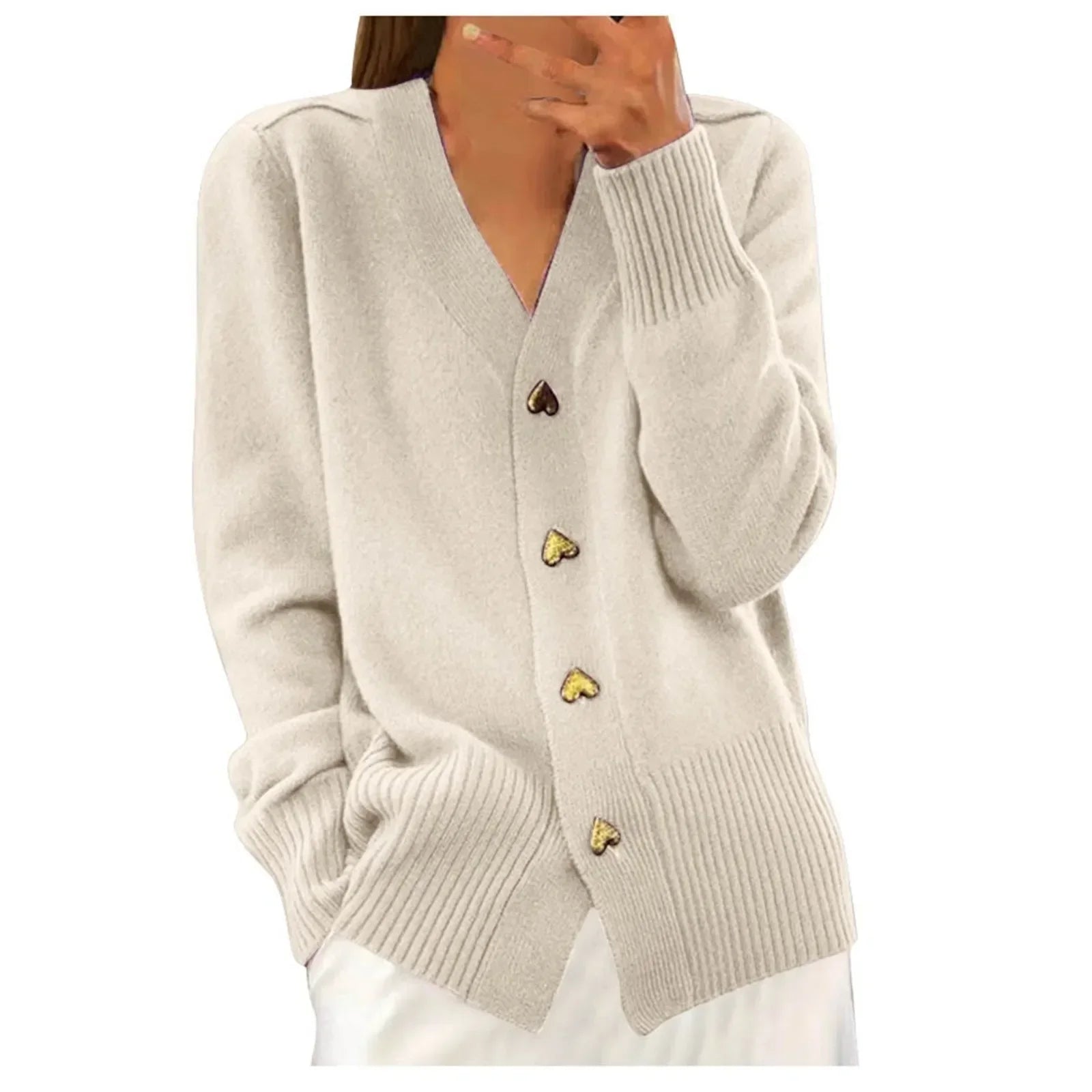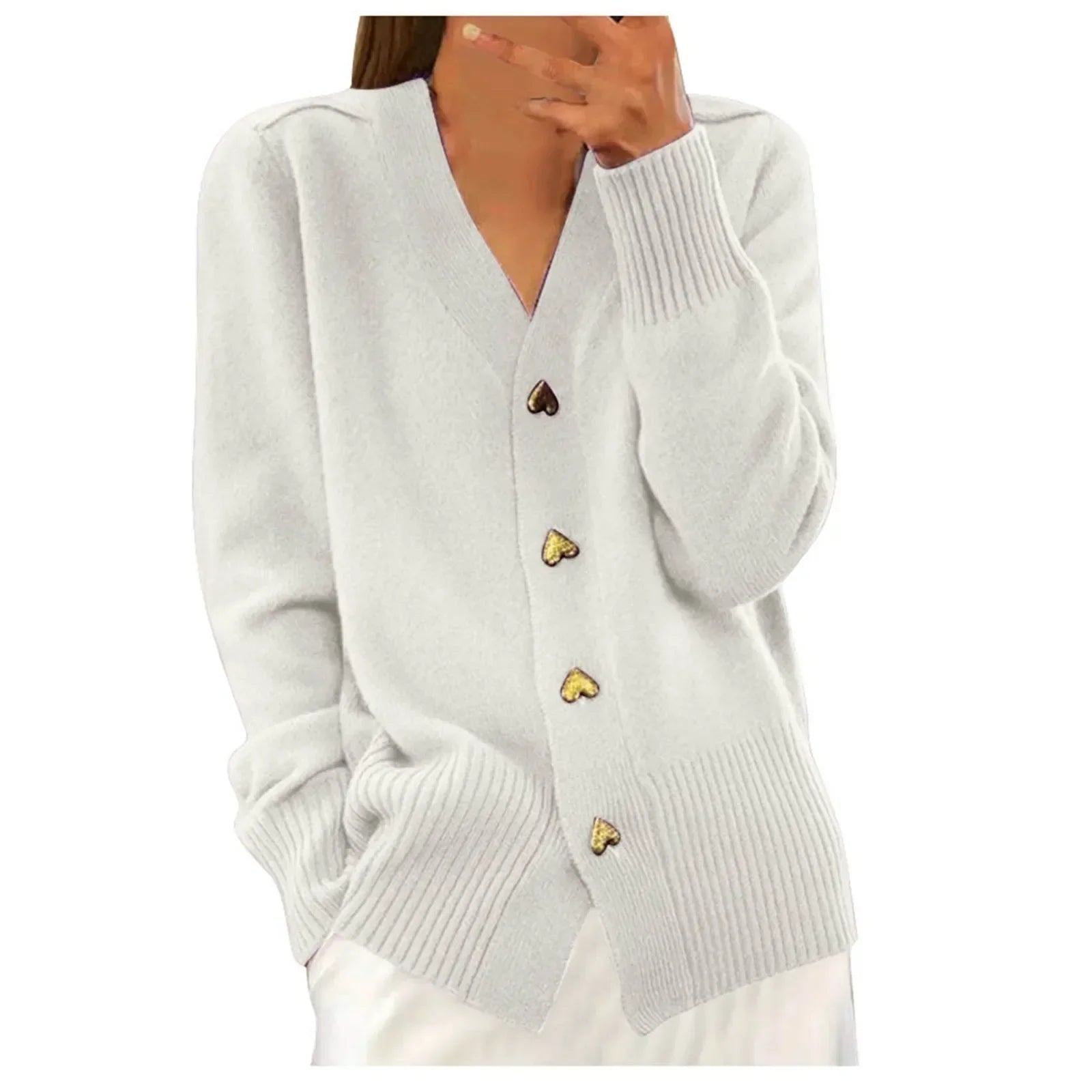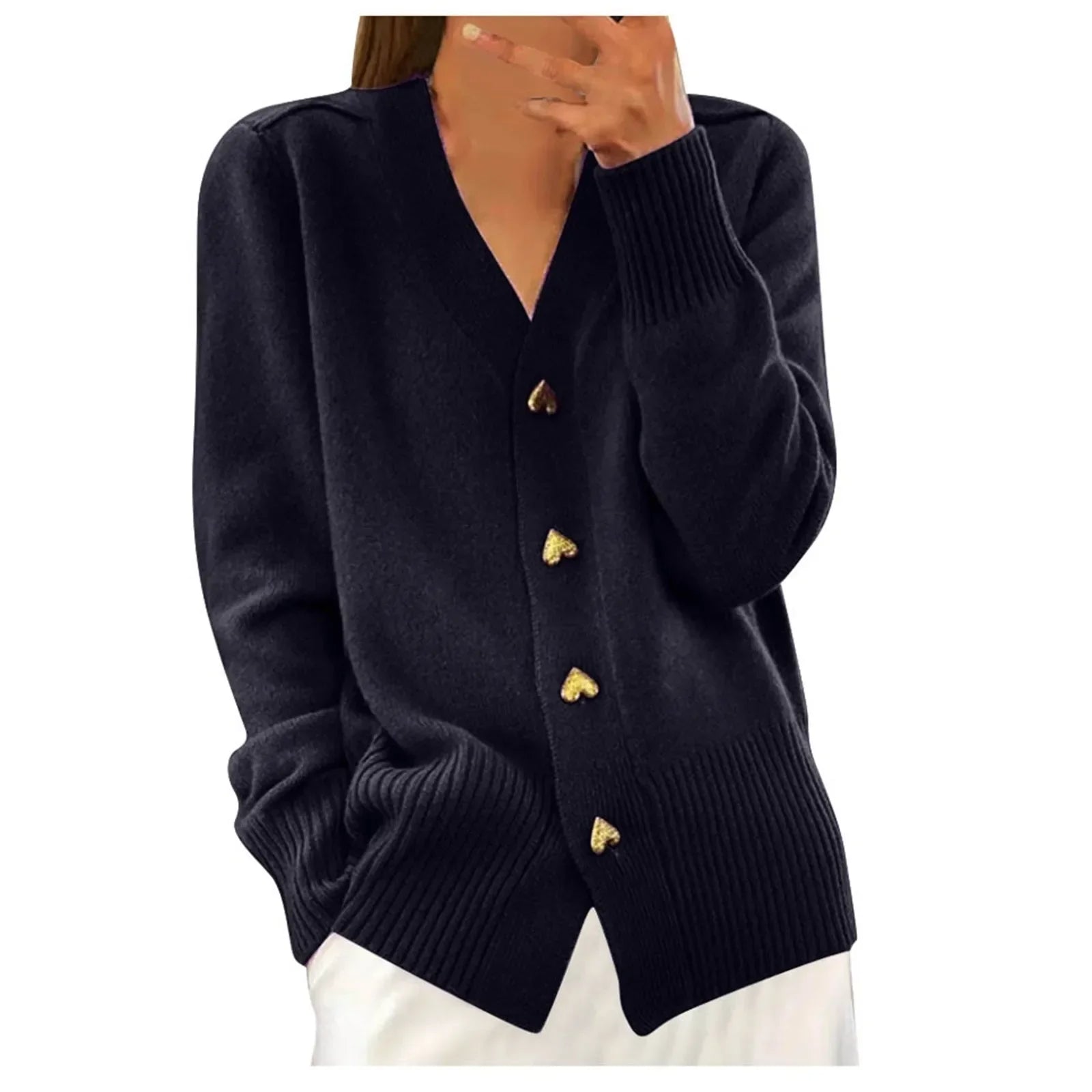 Amora cardiganen forener klassisk komfort med en unik og hjertevarm detalje: gyldne knapper formet som små hjerter, der giver designet et legende og personligt udtryk. Den bløde, luksuriøse strik føles fantastisk mod huden, mens den afslappede pasform gør den ideel til hverdagsbrug – uanset om du er hjemme, på arbejde eller ude med veninder.