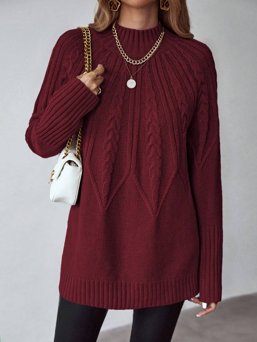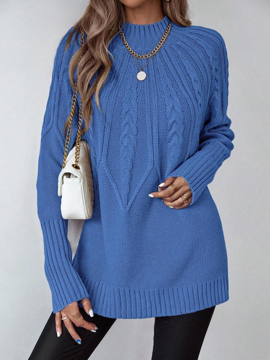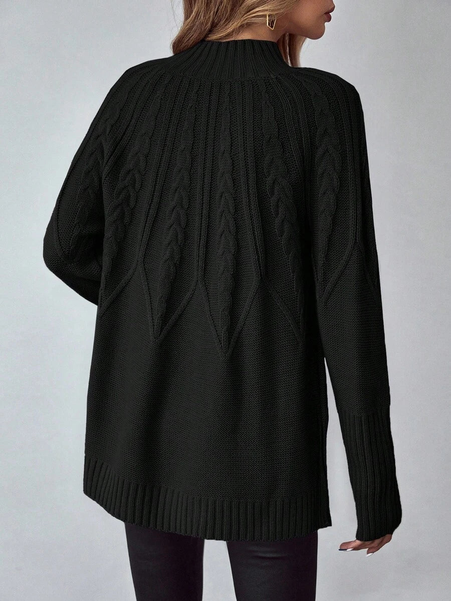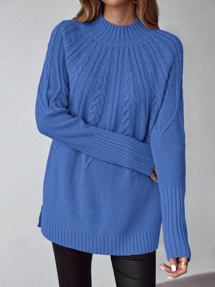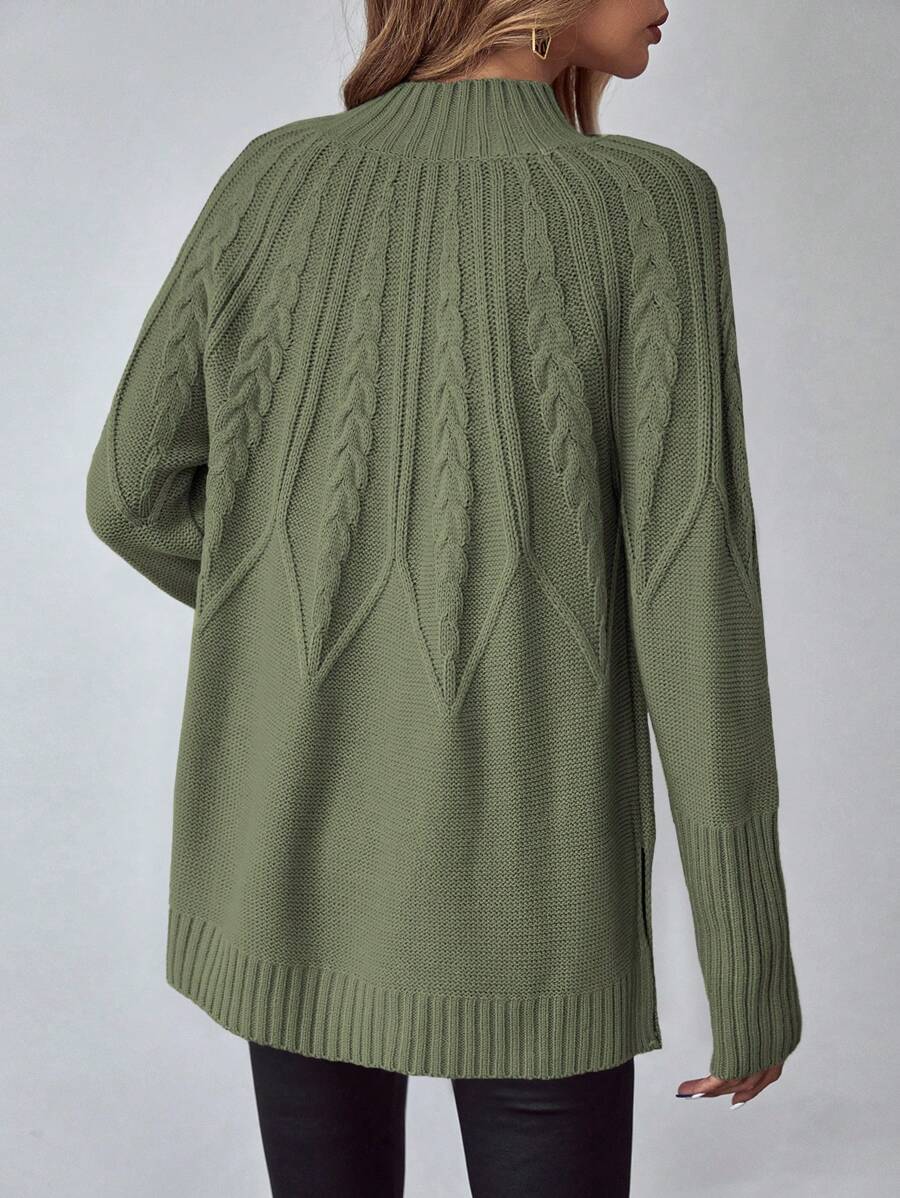 Livia™ er din nye go-to trøje til efterårs- og vinterdage, hvor komfort en vigtig som stil. Det klassiske kabelmønster kombineres med en moderne, længere pasform – hvilket gør denne sweater både flatterende og funktionel. Den bløde struktur og afrundede kant gør den perfekt over leggings eller tætsiddende bukser.