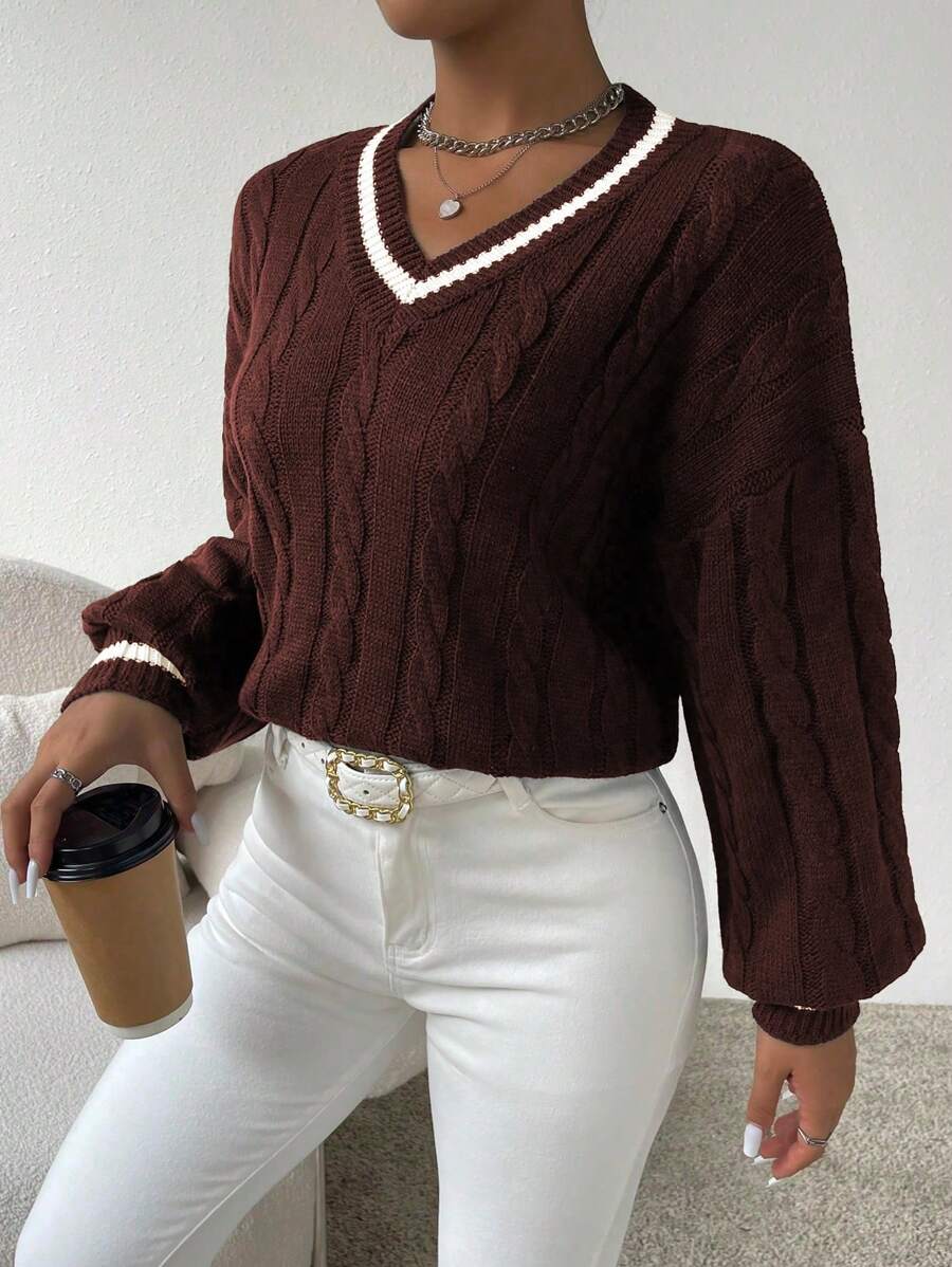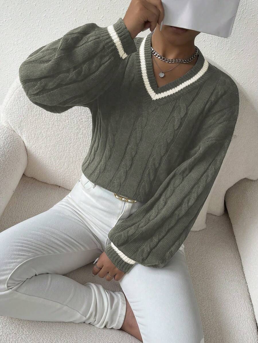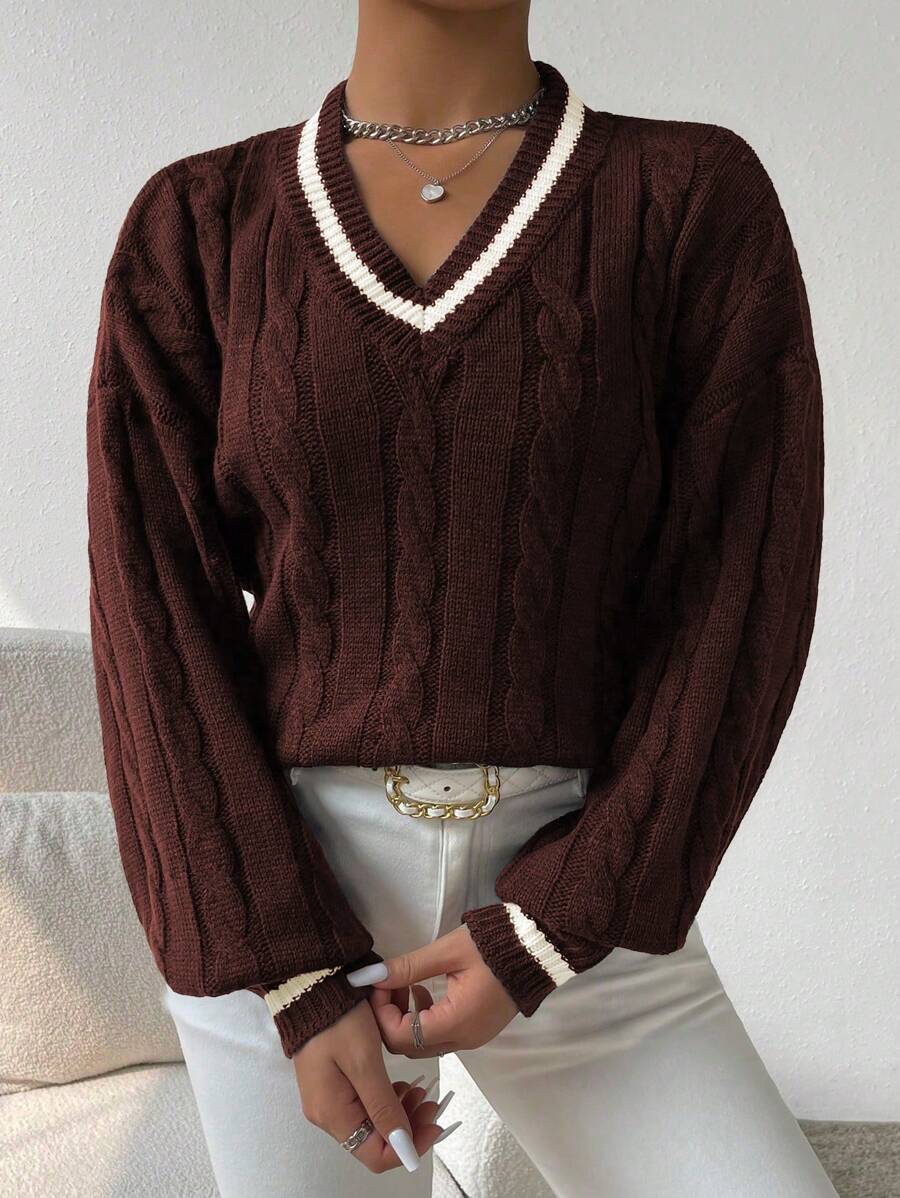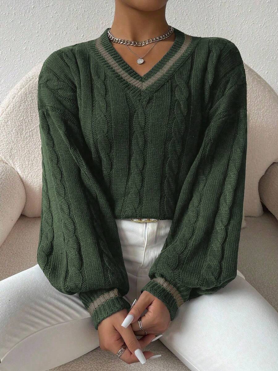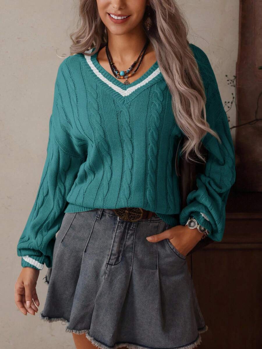 Claire™ | Preppy Kabelstrik Med Dyb V-Hals
