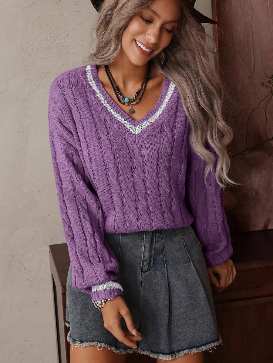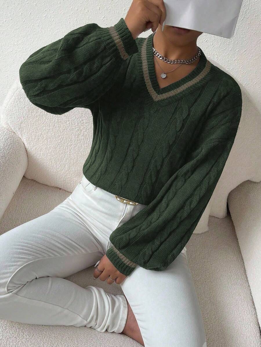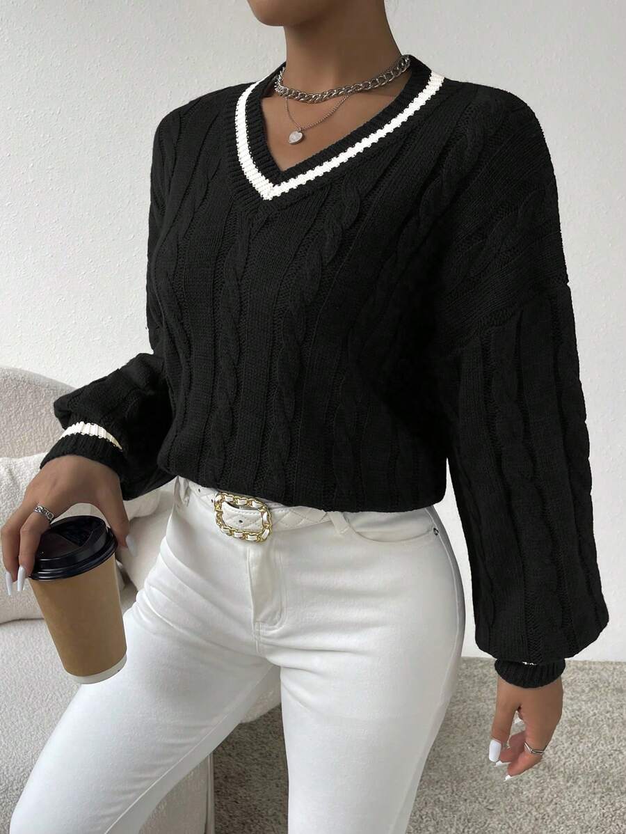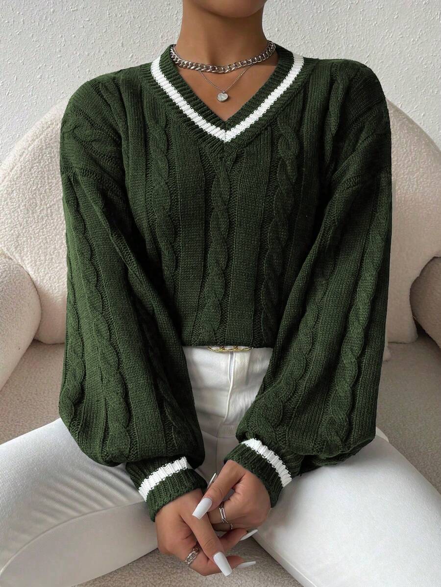 Claire™ | Preppy Kabelstrik Med Dyb V-Hals