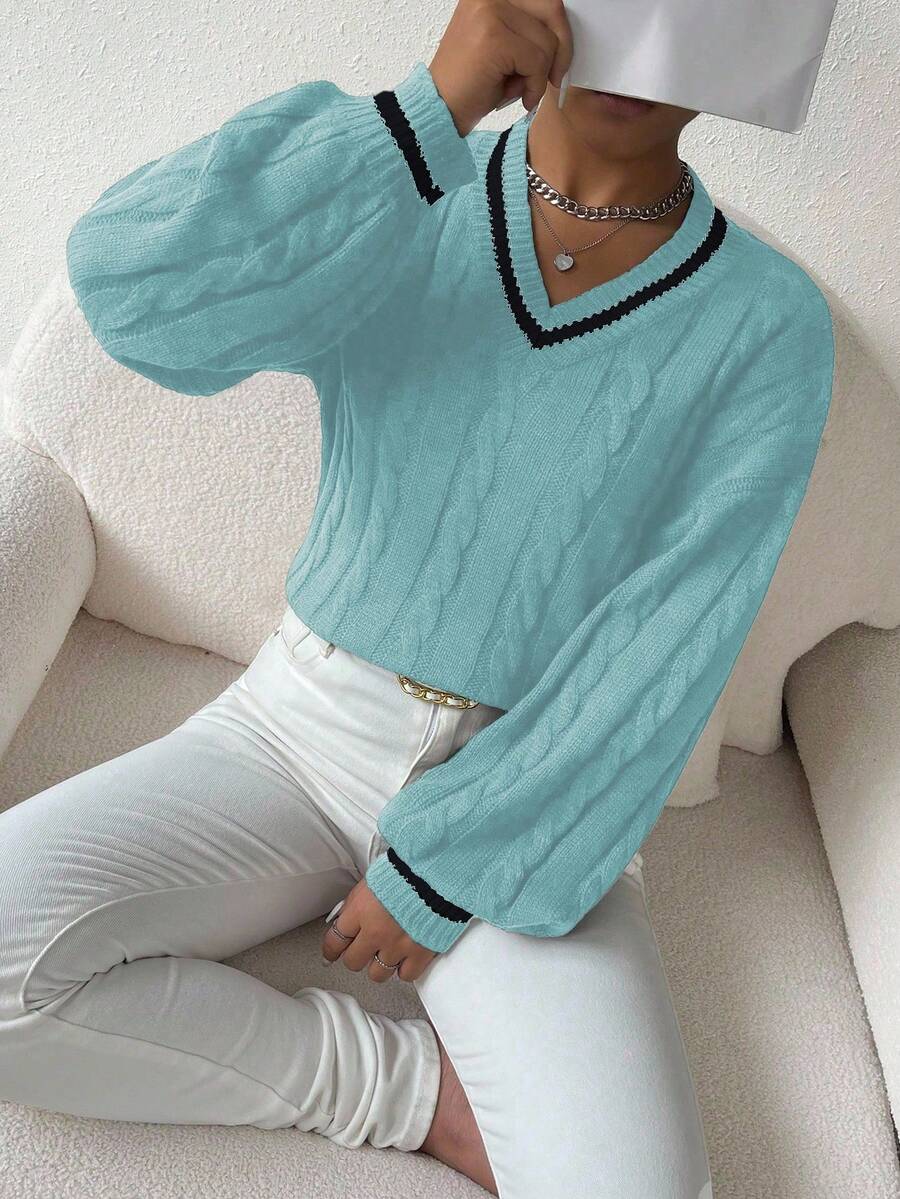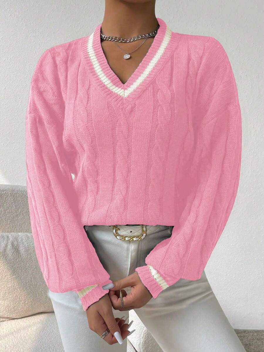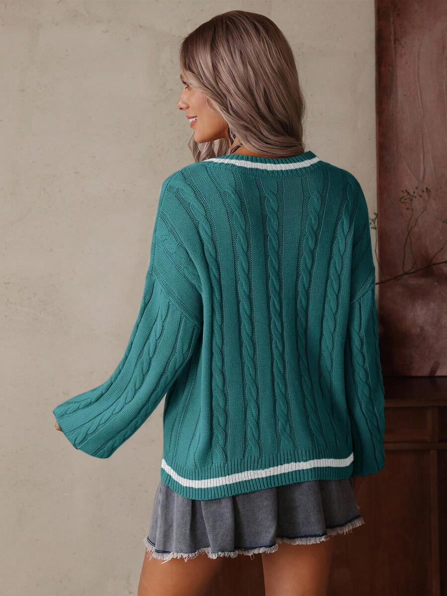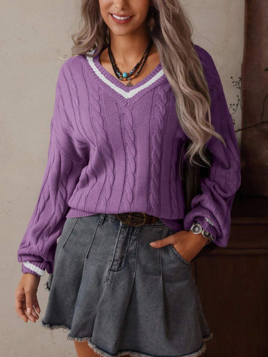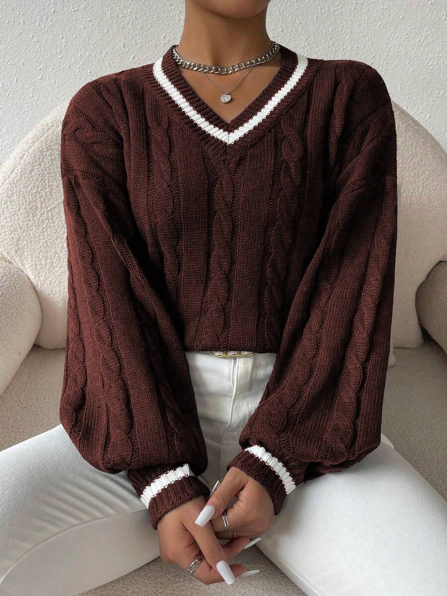 Claire™ | Preppy Kabelstrik Med Dyb V-Hals