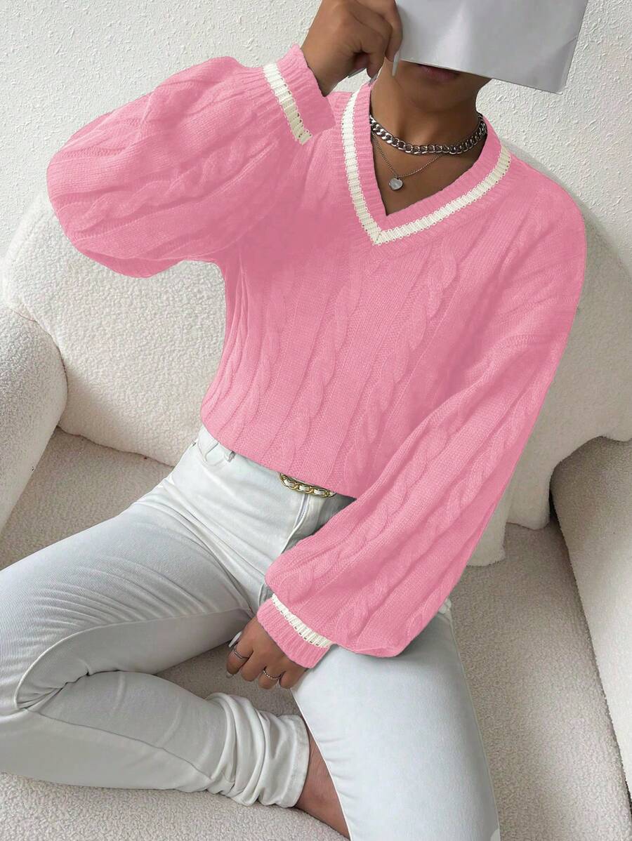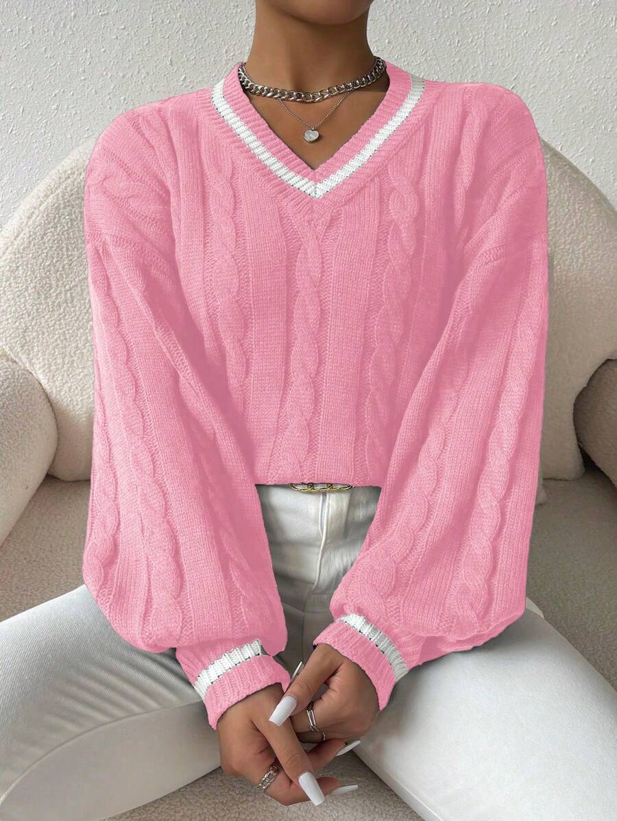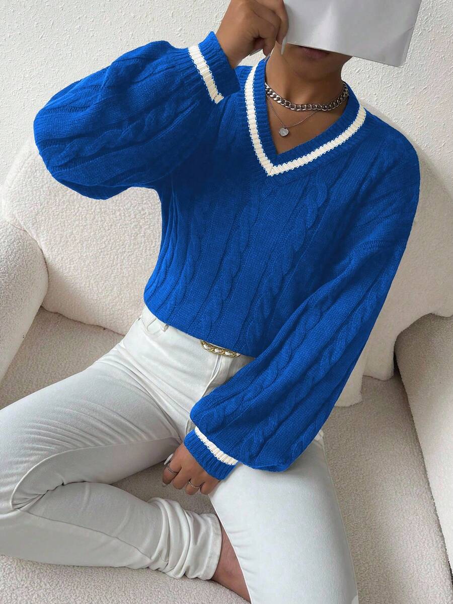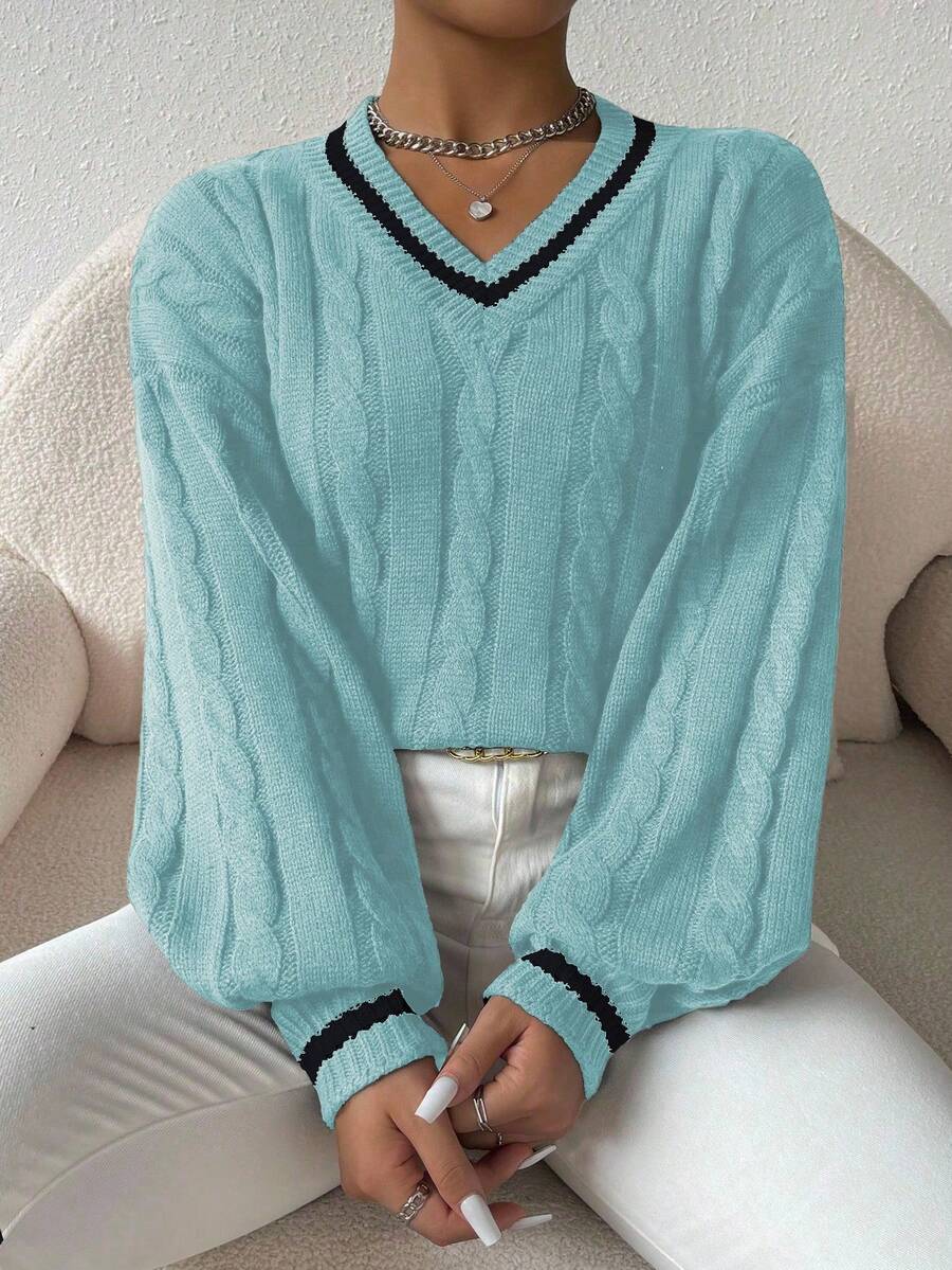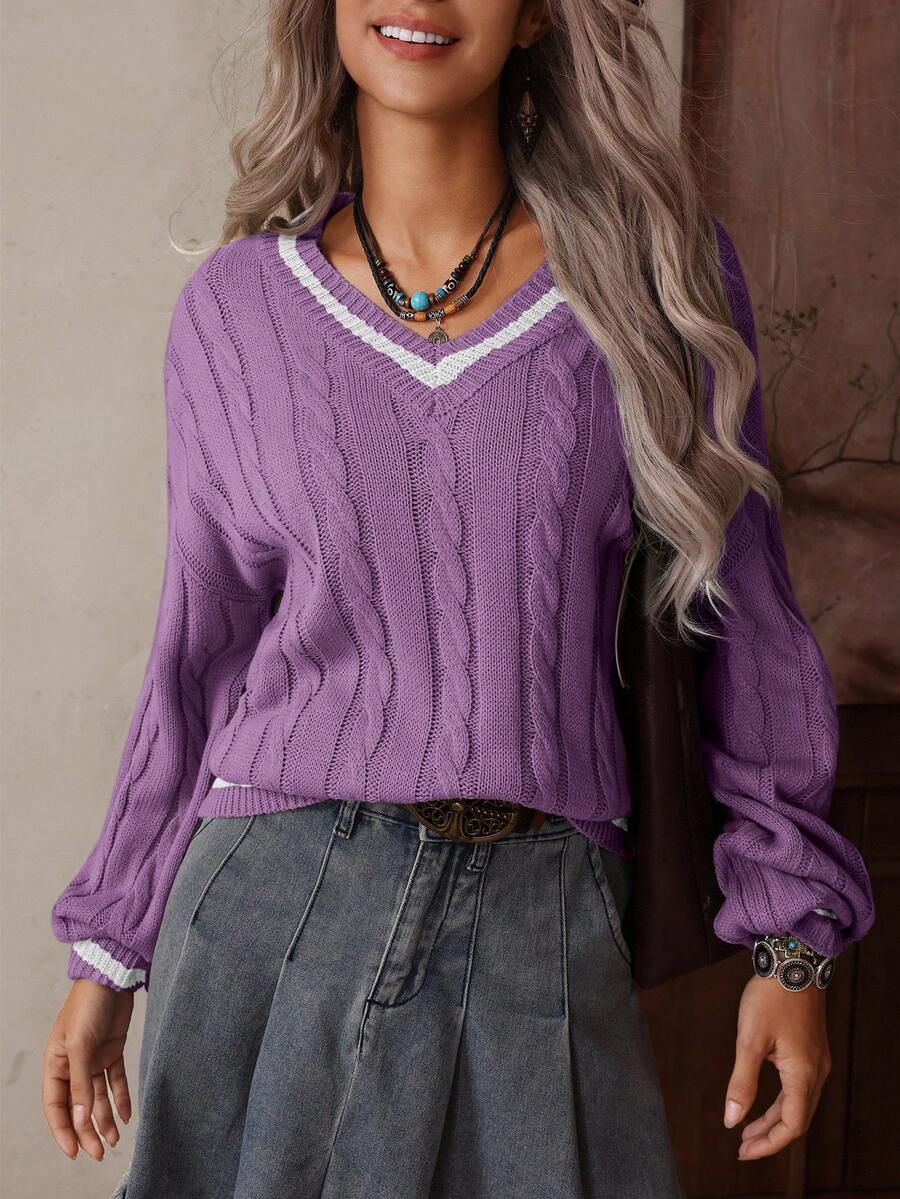 Claire™ | Preppy Kabelstrik Med Dyb V-Hals